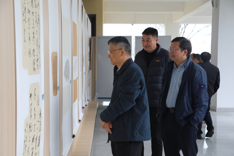 3月27日,丽水市政协副主席吴郁郁到松阳校区开展调研,实地参观正在校区展出的丽水市第六届女书家扇面作品展巡回展首站,并与现场师生及书法爱好者进行深入交流。松阳校区管委会负责人陪同调研。