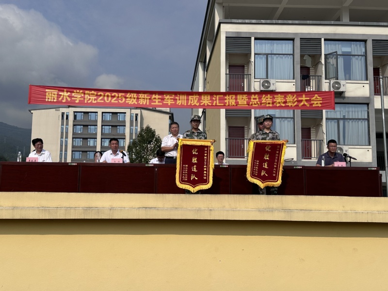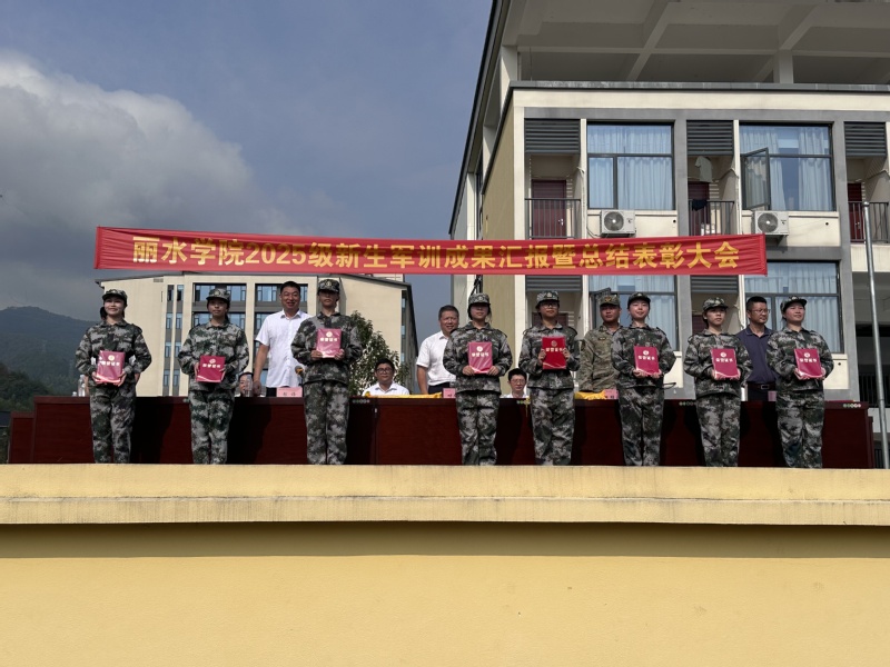 汇报结束后,丽水学院人武部副部长汤斌宣读2025级新生军训优秀学员、内务规范优秀寝室、优胜连队名单,并为获奖集体和个人颁奖。